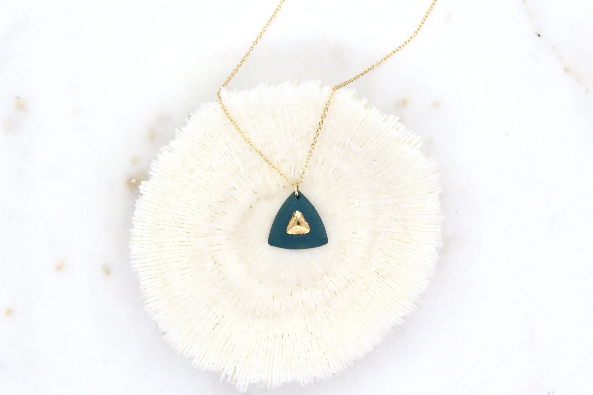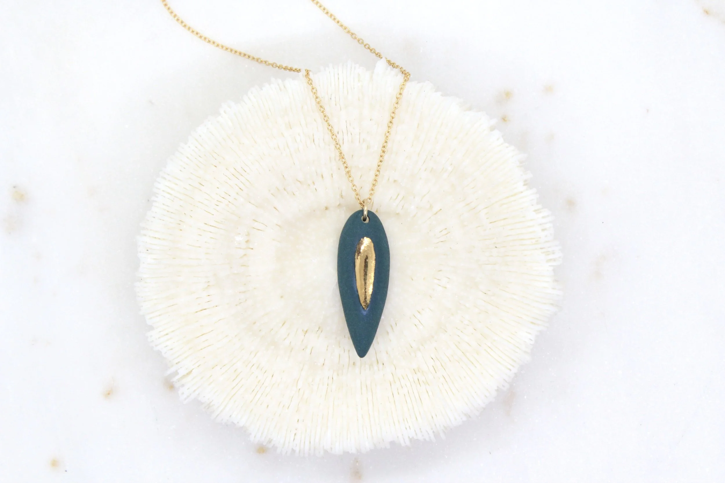 The gold jewelry goes through a independent process: each piece begins as a bit of wet porcelain clay, and is carefully shaped by hand before undergoing two different firings in the kiln. After glaze firing they receive 22k gold glazing and go into another round of kiln firing. Handmade jewelry are all slightly different, with its own character and quirks, making each one wonderfully unique.